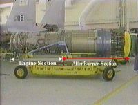アフターバーナーの使用により推力は、エンジンのみ使用時の推力の約30%〜100%増加させることができます。 その形状は、ジェットエンジンとほぼ同じ直径をした円筒の形状をしており、一見するとジェットエンジン本体との区別がつき辛い形状をしています(写真参照)。